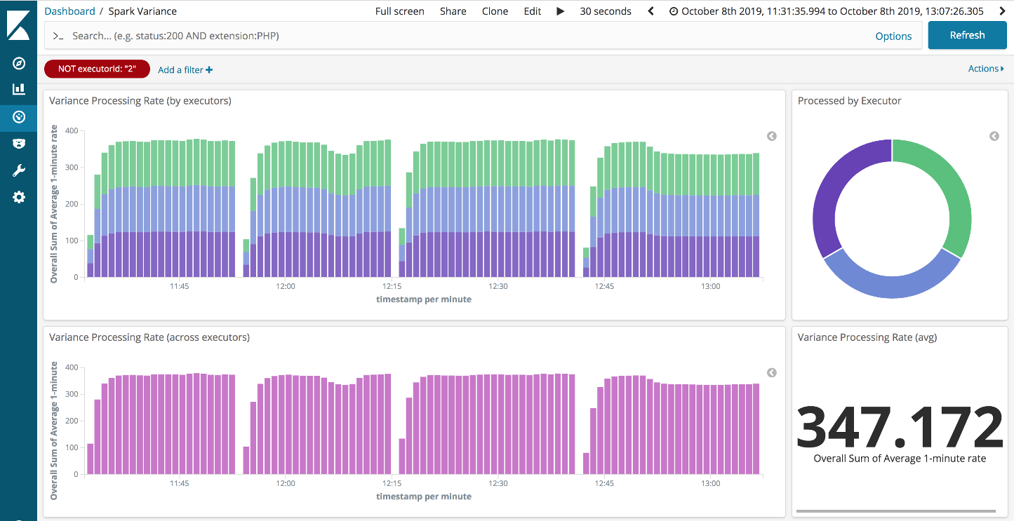First things first, as can be seen from the first two runs below, Structured Streaming is not impacted in the same way that DStreams was when over-partitioning is applied to the minimal variance scenario.